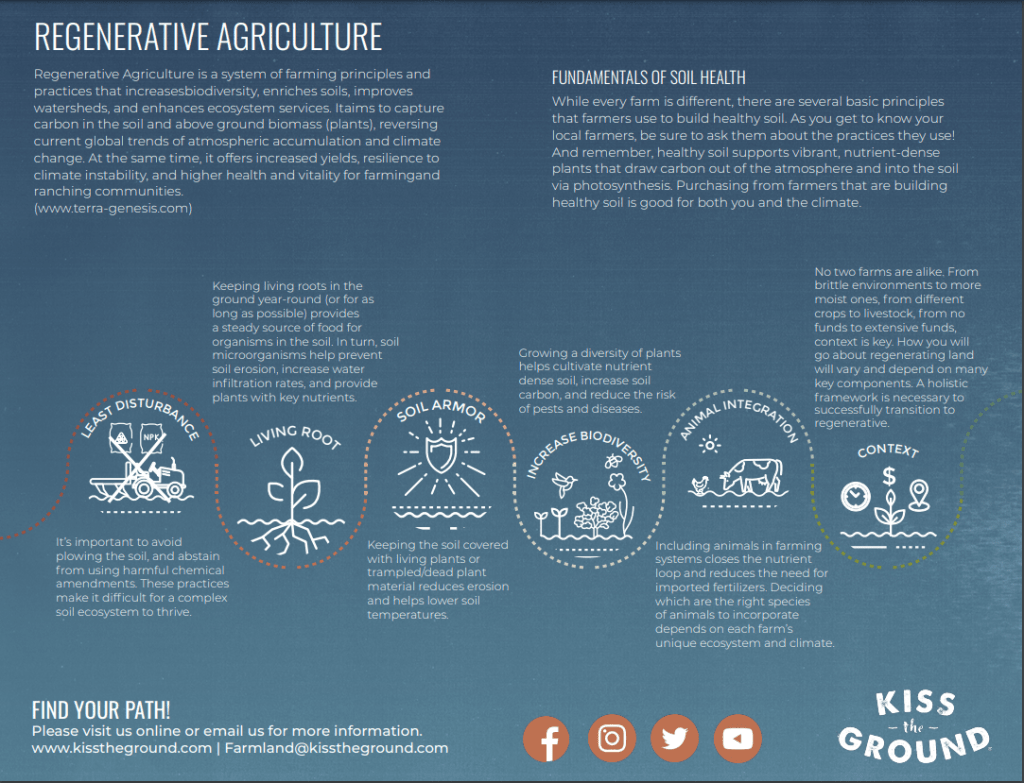There are no hard and fast rules to learning, implementing, or transitioning to regenerative agriculture – the approaches and techniques employed will vary by grower and region. And soil health practices can go beyond agriculture and involve landscapes throughout our non-agricultural lands, whether it is a city park, a front garden, or a school playground. Individuals, communities, and even large cities around the globe have started to wake up to the importance of soil and its critical role in our ecosystem.